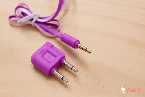 還有附上機上專用雙插孔轉換頭,帶孩子出國時也能安安靜靜聆聽,不怕孩子在機上吵!還會附上一接二轉接頭,準備兩副耳機就能用同個裝置和寶寶一起聽唷~