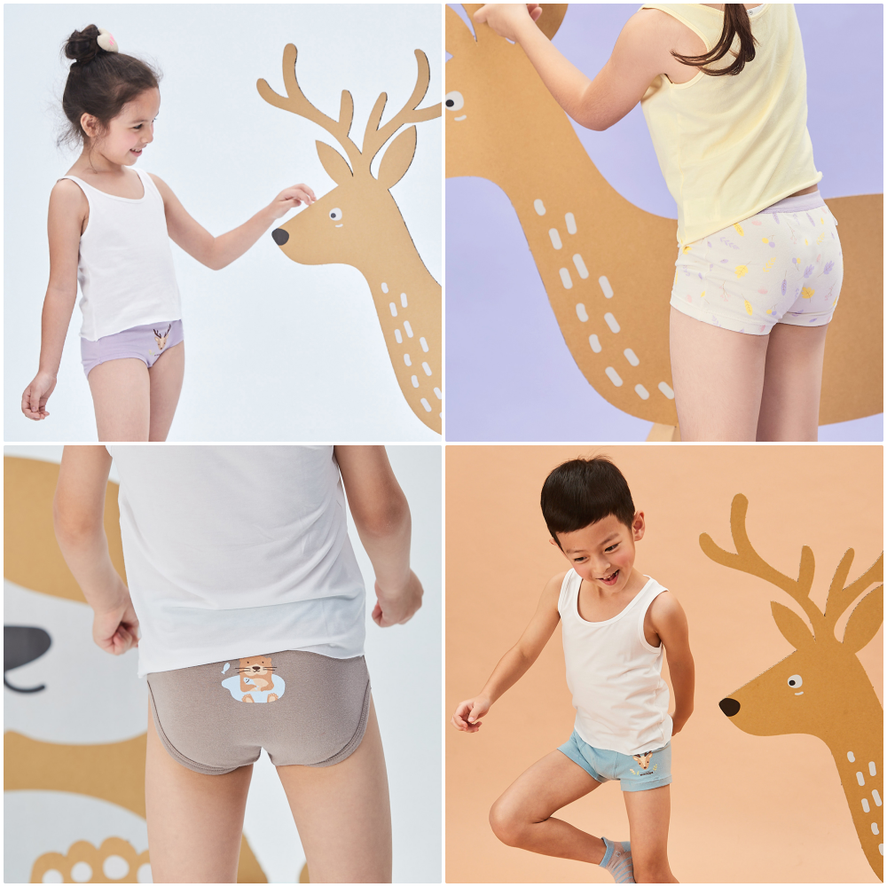 純棉的材質舒適且彈性好,穿起來一點都不卡屁屁,解決了好動小男生因為小褲褲卡屁屁當眾拉小褲褲的窘境。