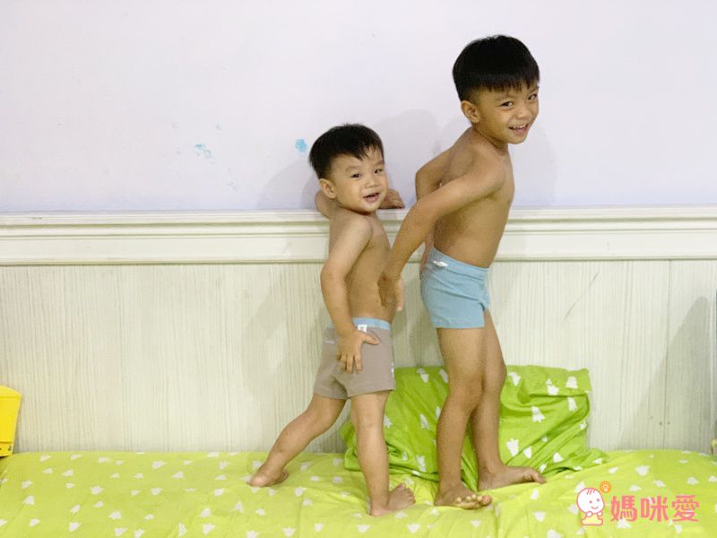 簡單無過度華麗的圖案,寬褲頭的設計不容易造成褲頭捲曲,阿弟跟阿圻都喜歡四角褲,大腿圍的設計穿著時間久也沒有勒痕,兩個寶貝選小褲褲時都只選這一件,可見穿起來舒適柔軟好活動,讓孩子們都說好穿。