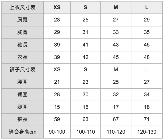 尺寸:S(95-110cm)、M(110-125cm);產地:台灣