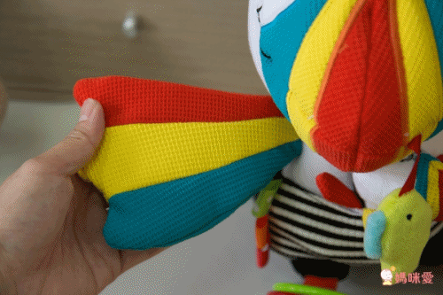 比較特別的是翅膀除了使用響紙之外,壓下去有點厚度稍微硬硬扎實的觸覺,除了小寶貝喜歡按壓之外,小王太太也覺得壓下去觸感很好,一直壓個沒停(笑)