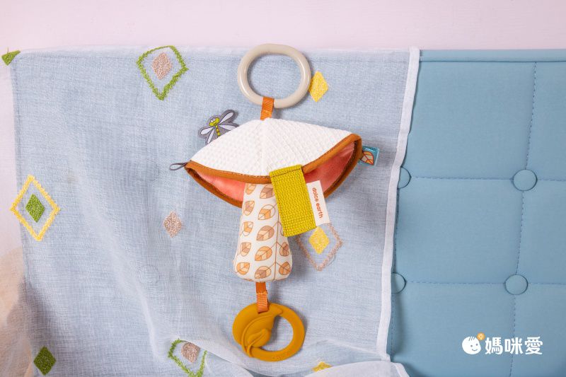 蘑菇裡藏有清脆悅耳的風鈴聲,輕輕搖晃就有聲音,刺激寶寶聽覺感官~ 梁麵說:媽咪你要不要吃小蘑菇~我有小蘑菇~