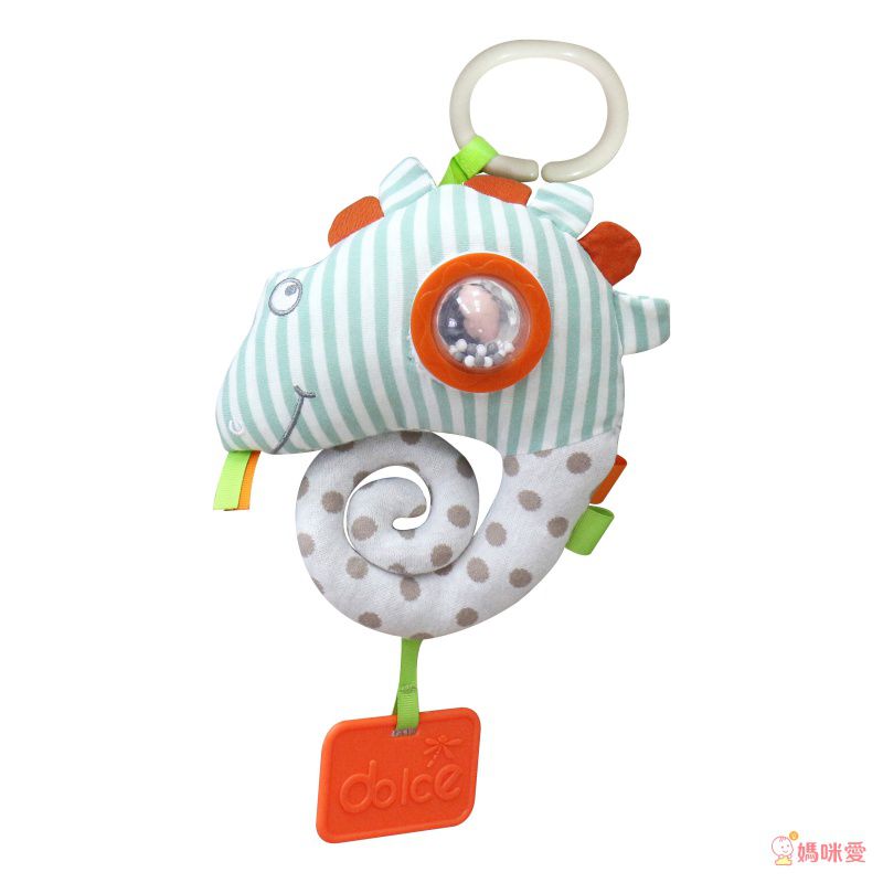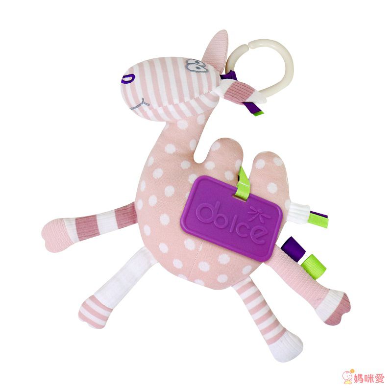 幾乎每隻玩偶都有一塊固齒器,上面印了大大的 Dolce 品牌+凹凸顆粒,增加新生寶寶咬咬的口感XD