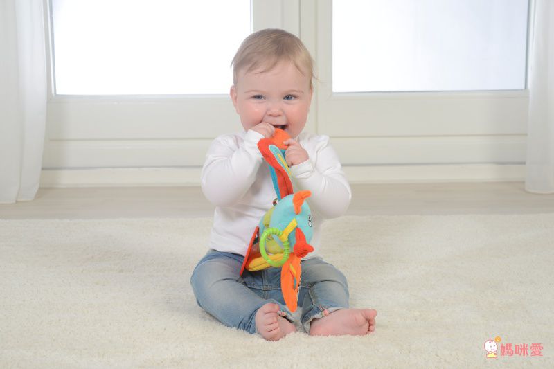 紅色小魚本身也是固齒器,可以拆下來玩喔!啊姆啊姆~~看小檸檬咬得好開心呀✌