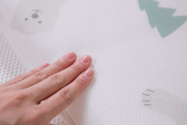 仔細看床墊的材質,可以看到許多透氣的小孔洞,氣體可以在這些孔洞中流通,散熱也就變快囉!