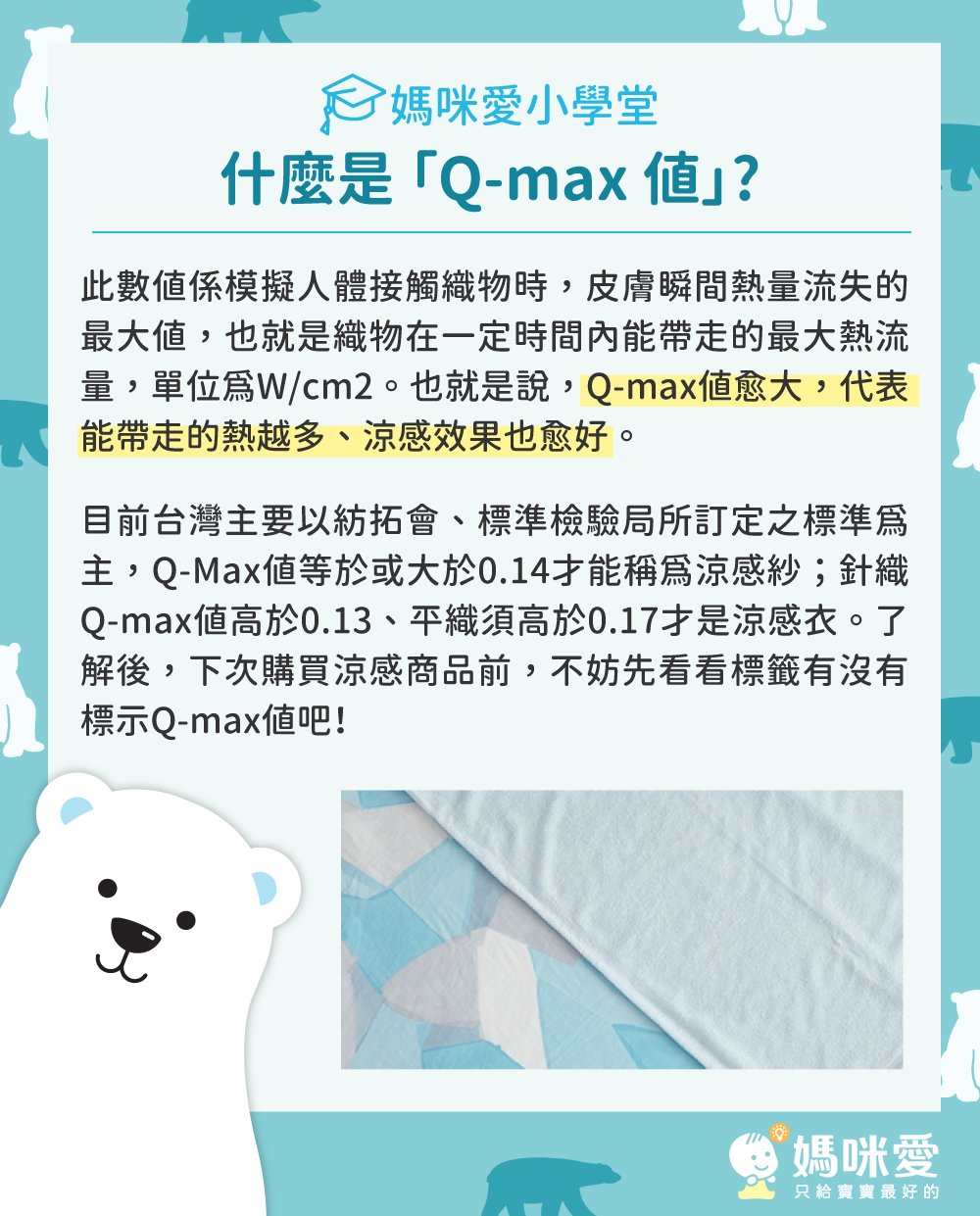 嬰幼兒不但體溫高嬰幼兒不但體溫高也常流汗,一張能快速排汗散熱的床墊,能讓寶寶睡得更安穩舒適!而第二代更增加了「夏日冰感表布」其Q-max值高達0.293W/cm2,能有效散熱,迅速變涼!