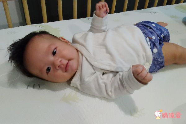 孩子現在開始會翻身了,整個嬰兒床就是他的遊戲場