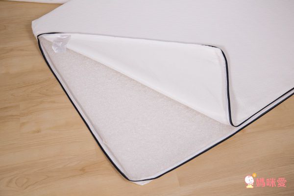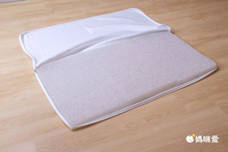 床墊的外套是可以拆開的,裡面的床墊是可以水洗的唷!無論是寶寶吐奶或尿床,馬上可以清潔,避免滋生細菌。床墊的材質不親水,所以很快就乾囉!對於媽咪真是一大福音啊!