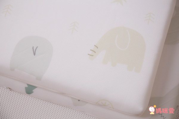 PAMABE的床墊是可愛的動物花紋,孩子好奇地一直看床墊