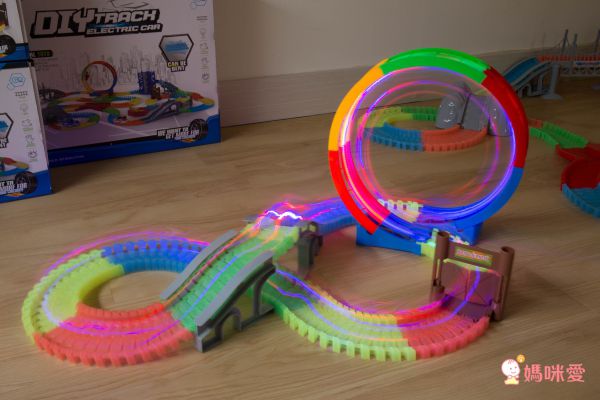 酷炫 LED 燈,開車勇闖360度風火輪、過山洞、升降梯!孩子自己拼接軌道,訓練邏輯