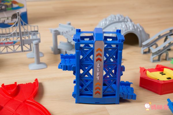 這系列有一款超厲害的道具—【升降梯】♡ 不需額外裝電池,藉由輪胎的轉動,讓車子自己上樓去,而孩子也會去思考要如何組裝他的跑道。