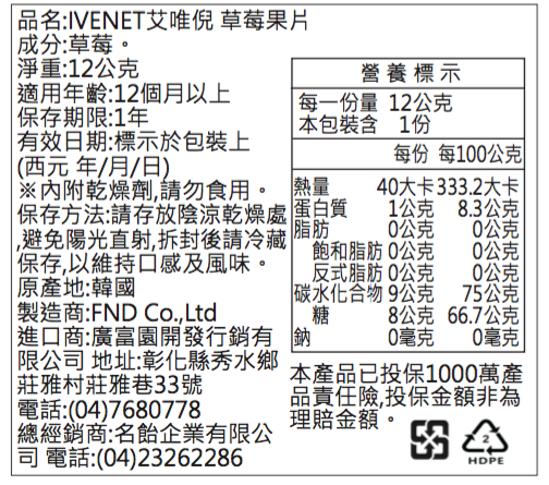 適齡:蘋果:六個月以上;草莓:十二個月以上