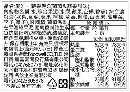 攝取蔬果營養對寶寶來說最重要了!這次開團的蔬果泥出了三種口味:柳橙胡蘿蔔、水梨百香果、白葡萄蘋果,每一種都含有8種以上水果和蔬菜高膳食纖維~