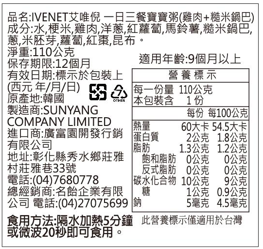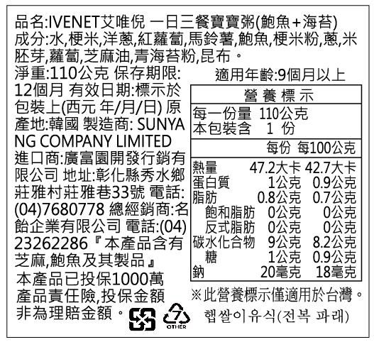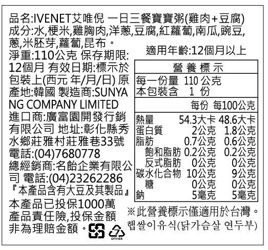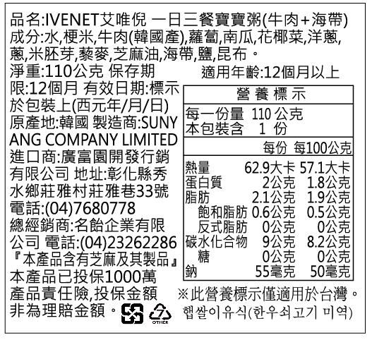 適齡:牛肉/海帶、雞肉/豆腐-12個月以上;雞肉+糙米鍋巴-9個月以上;鮑魚/海苔-9個月以上(此次開團不販售)