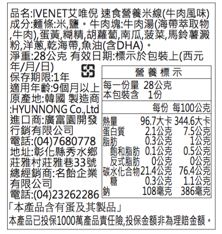 食材上面也很讓人安心,使用韓國大米及豐富蔬菜製作,以凍結乾燥技術保留營養和味道,添加DHA、非油炸、清淡又美味!