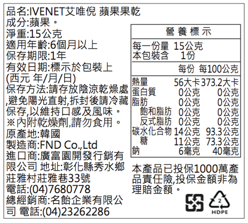 既然是給孩子吃的水果乾,成份一定要超單純!不添加糖、無反式脂肪、無防腐劑,完全無添加任何人工添加物,使用100%韓國優質水果,使用冷凍乾燥技術,保留食材原有的營養與味道!