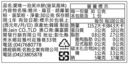 艾唯倪的大米餅,可是韓國銷售前10名的嬰兒餅乾呢!嚴選天然白米,無鈉、無添加小麥麵粉、無糖、無合成香料、無油、無鹽,成分超單純!