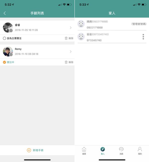 多寶媽咪也別擔心!【hereu U5】可以設定關注多位手錶使用者~ 無論大寶、二寶都可完善關注著!(下左圖)