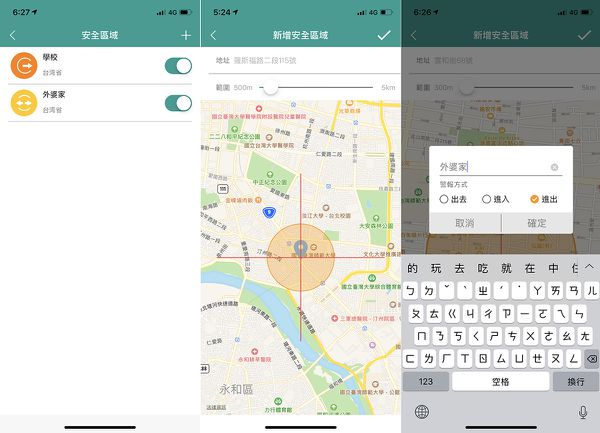 可先設定孩子平日習慣移動的「安全範圍」(例如安親班方圓500公尺),若孩子超過警戒區域即送出警示,提醒父母孩子離開了安全範圍