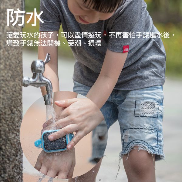 可防潑水,不必擔心汗水滲入或洗手潑到。但不建議游泳及洗澡時配戴。兒童使用的電子產品真的是需要防水功能,不然一個不注意就囧了.....