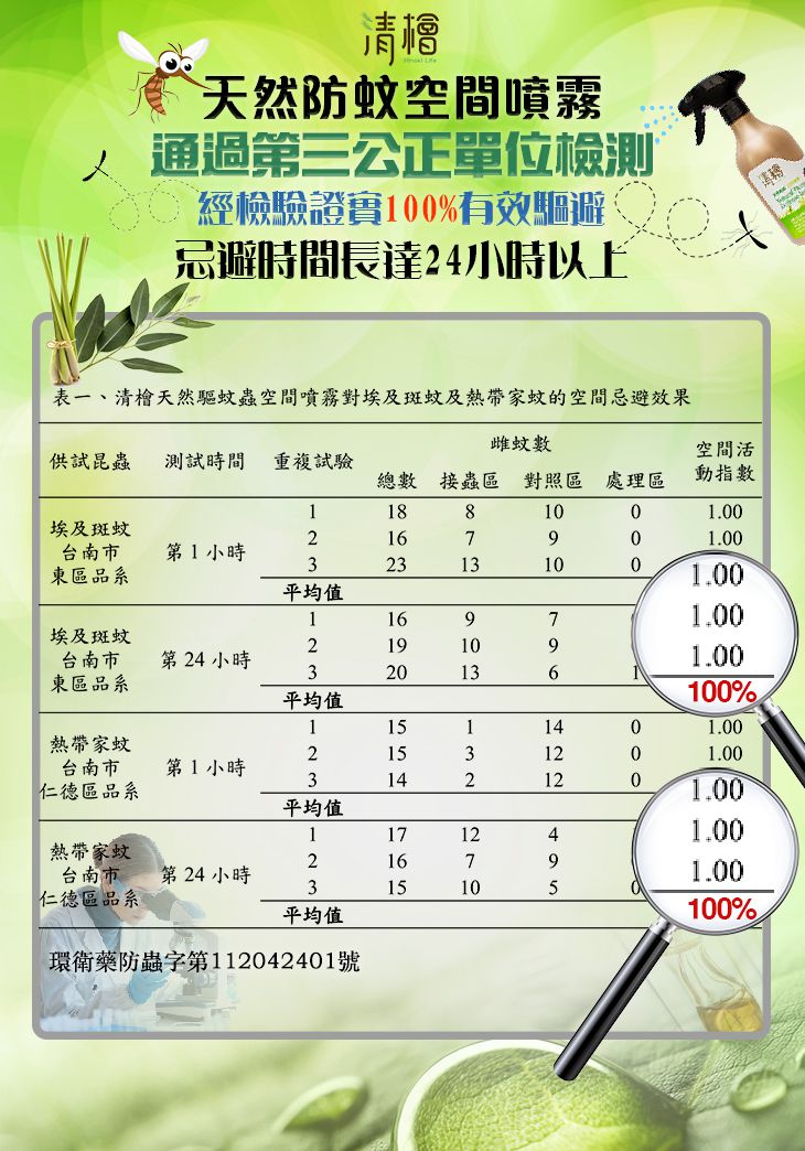 經檢驗證實100%有效驅避~使用高濃度植萃精華,不易揮發效果更持久