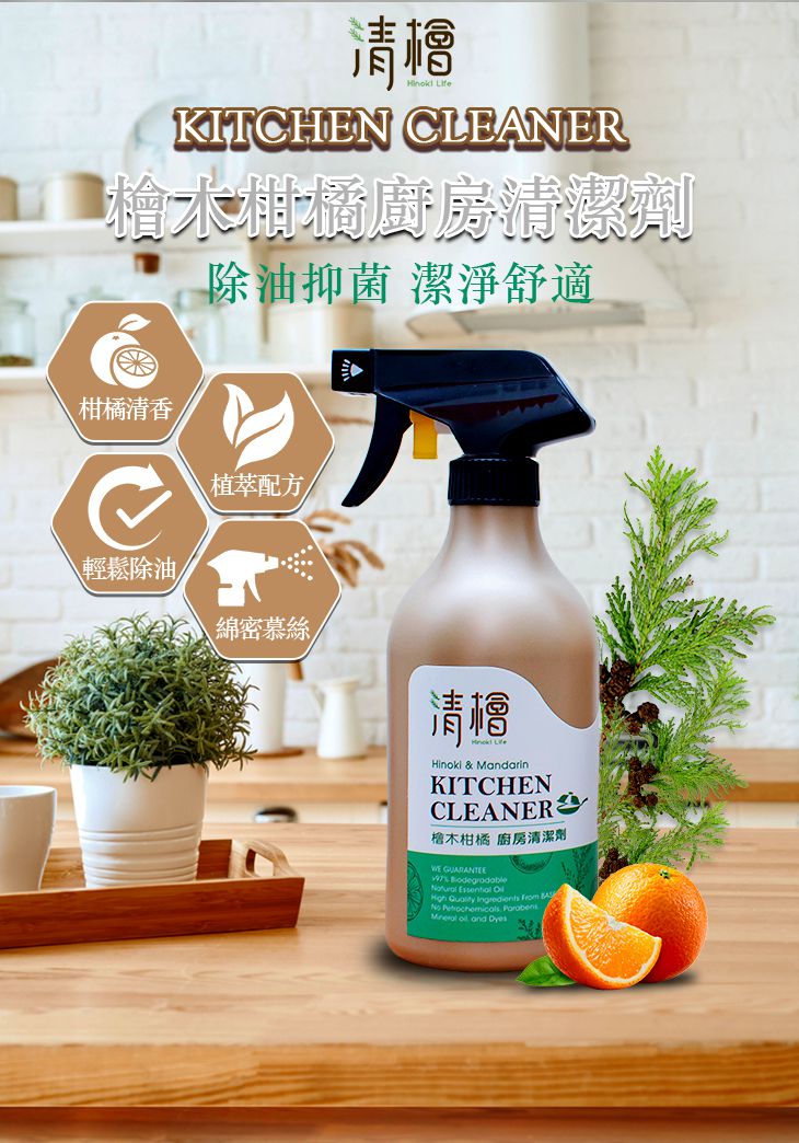 成份:檜木精油、食品級橘油、玉米油醇、甜菜鹼、椰子油醇、天然非離子界面活性劑、山梨酸鉀、純水。
