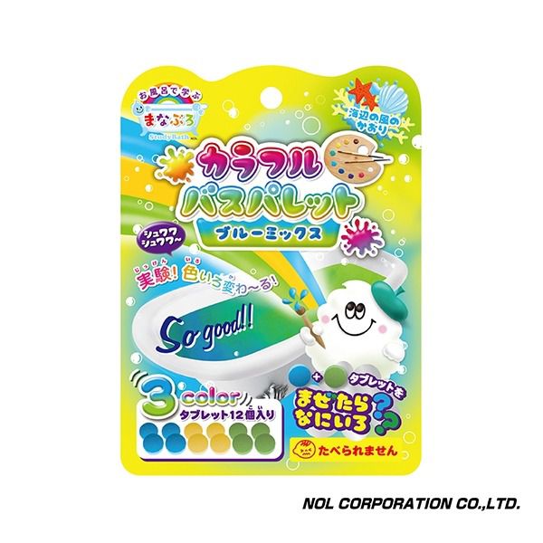 入浴錠設計,將不同顏色入浴錠投入水中,觀察色彩的變化,泡澡兼趣味顏色學習!