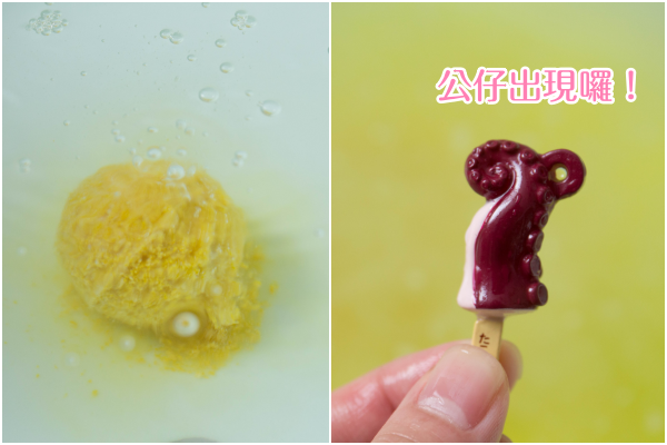 隨著入浴球溶解後公仔逐漸出現啦~原來我拿到的是小章魚tako >///<