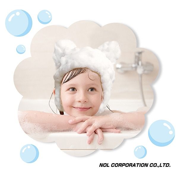將入浴劑放人水中,用手攪拌就會產生泡泡!若用蓮蓬頭沖可以產生更多的泡泡喔!可以讓孩子學著做「帽子」、「鬍子」或「耳朵」等造型,發揮腦力動動小手!