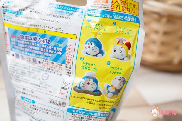 一看到外包裝,媽咪立刻想到日本的扭蛋機,總是有各式各樣的造型公仔,做工都很細緻,今天我們就來試試看日本Bandai的卡通公仔入浴球吧!