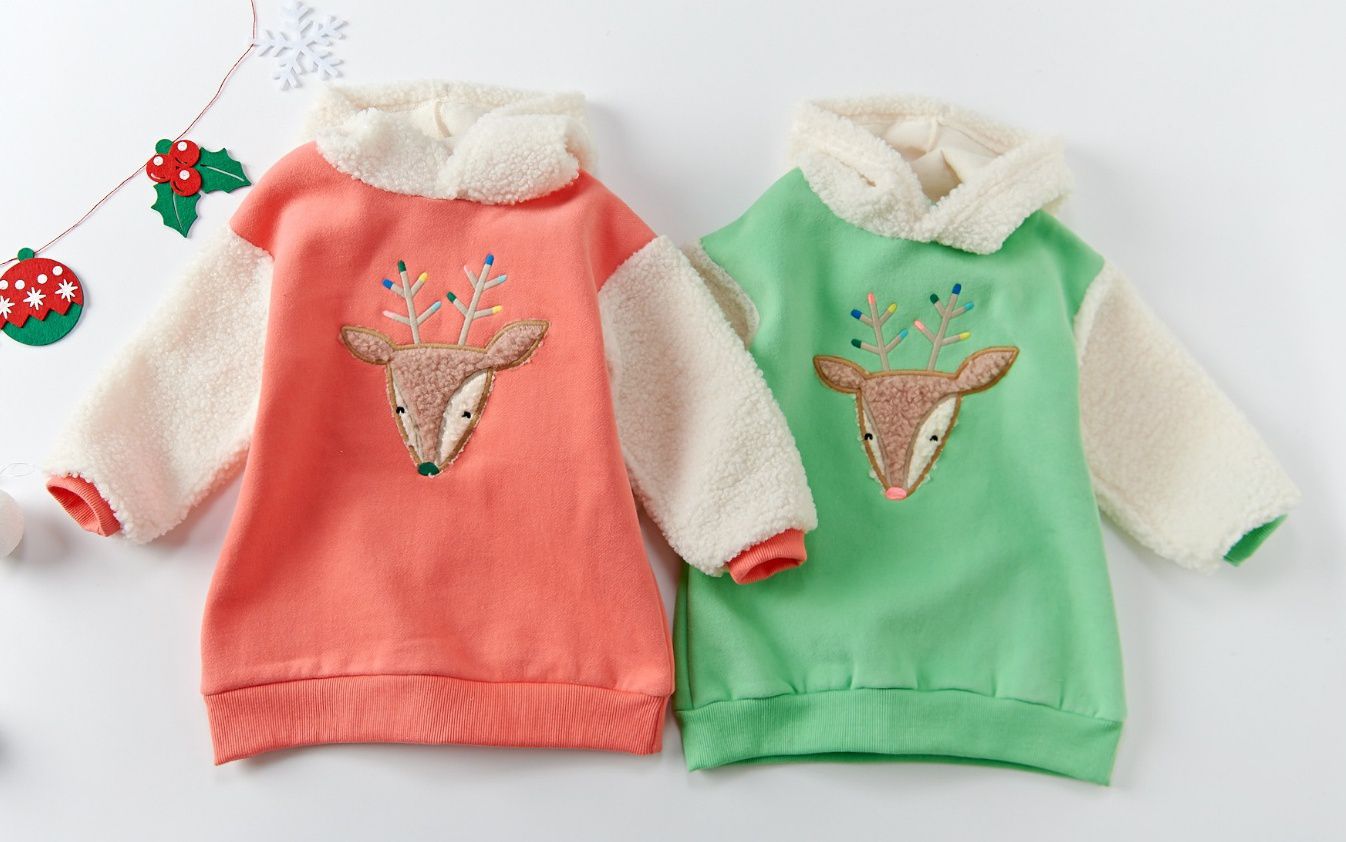 搖粒絨糖果色麋鹿連帽長版T