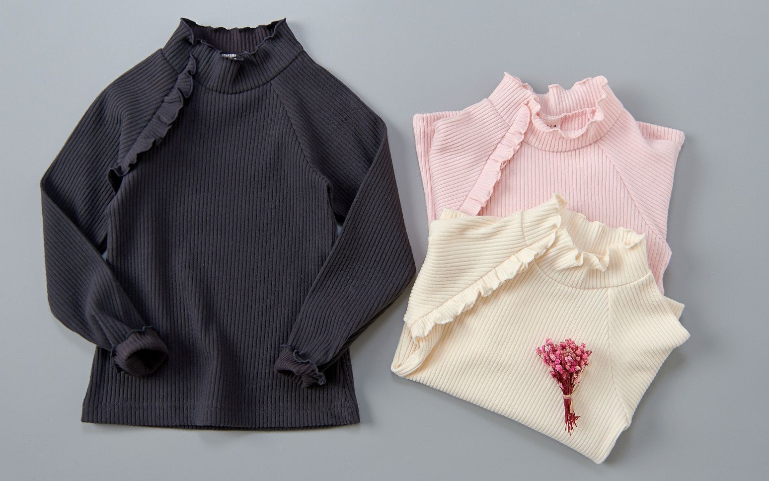 微高領荷葉邊看起來好有氣質呀~共三色可挑:深灰、櫻花粉、米白
