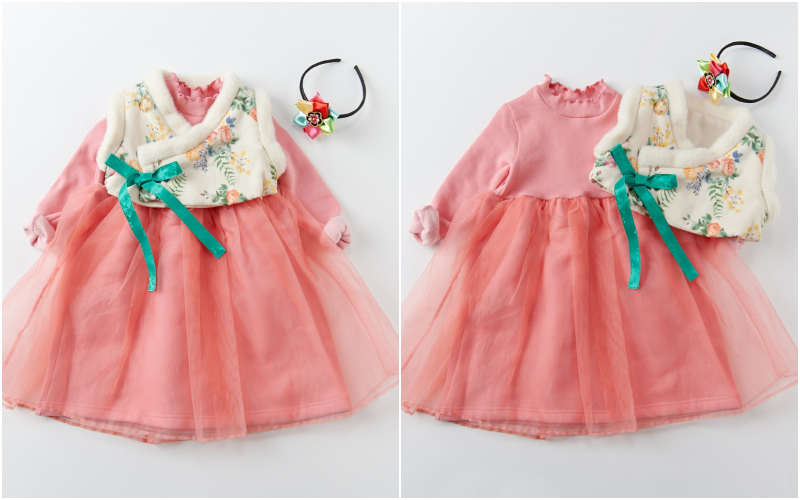 韓國 Dalla - 兩件式生活韓服-棉襖背心+玫瑰粉網紗洋裝(不含髮飾)