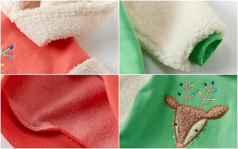 這次會提到三種內裏,先跟媽咪們說明一下差別喔~內刷毛的毛最長最多,也最暖;內鋪棉則是在裏層多縫一片薄薄的微起毛保暖布;裏起毛則就是原本的布料起毛,台灣秋天微涼的時候很適合喔!