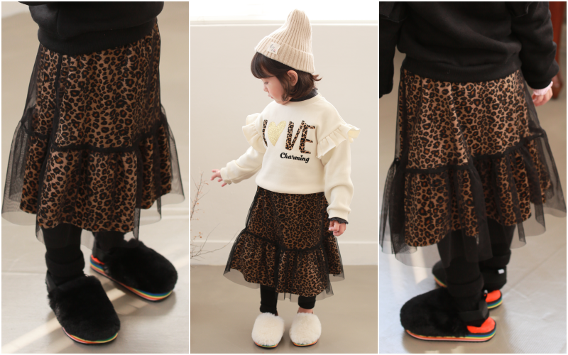 (裏起毛)虎紋網紗褲裙