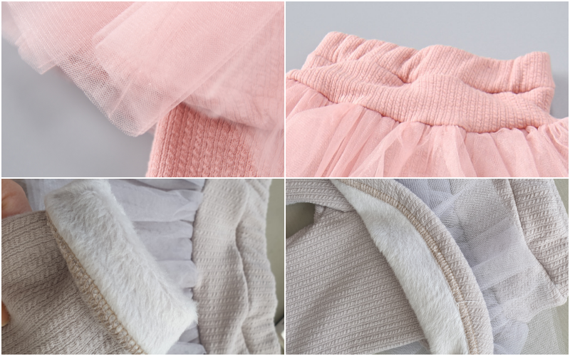 紗的部分並不會直接接觸到寶貝的皮膚,不用擔心會引起粗糙的不適感喔~內裏刷毛即使單穿也不冷!
