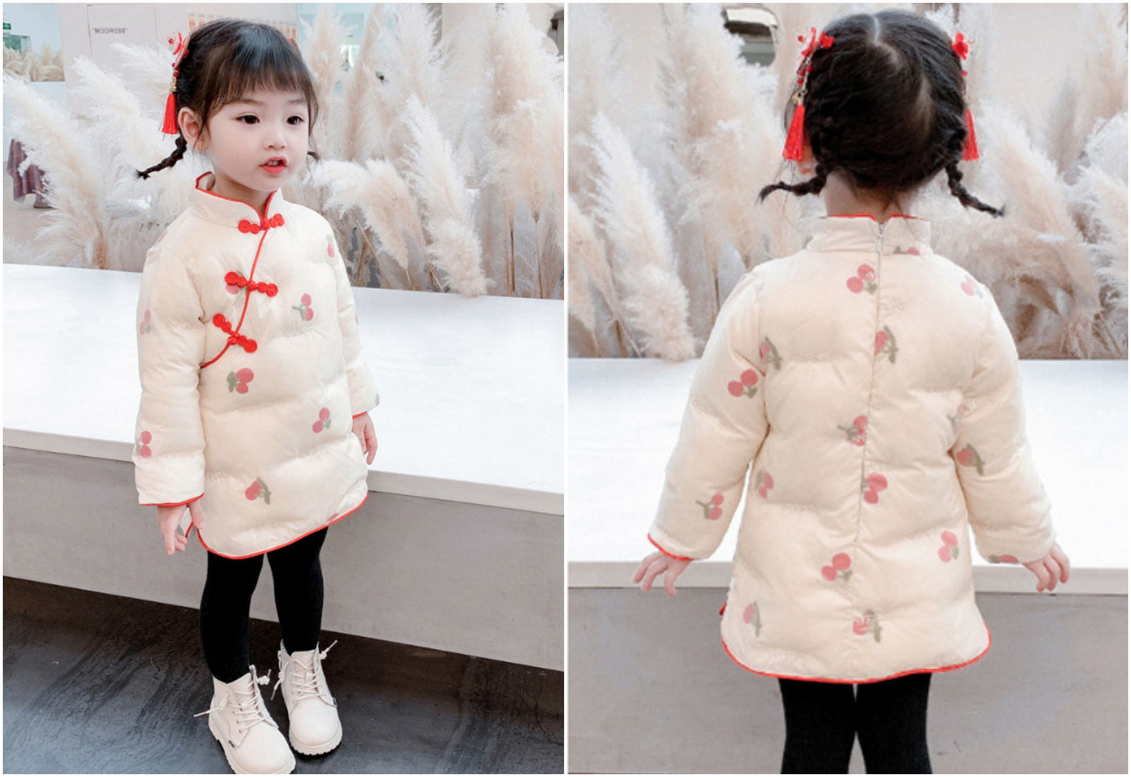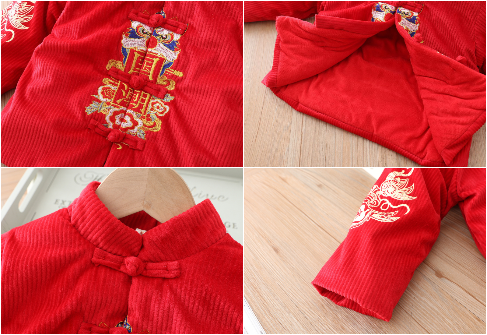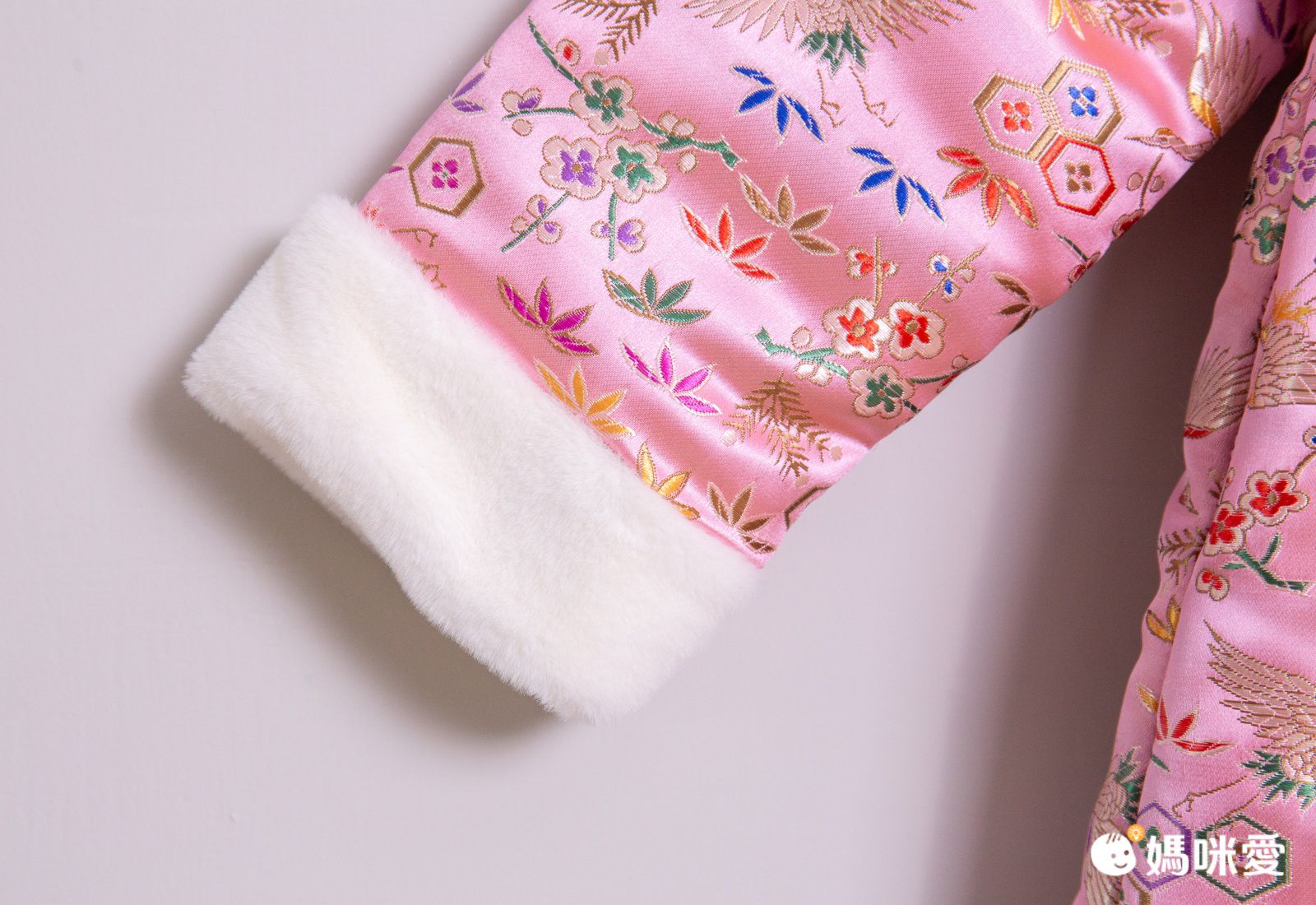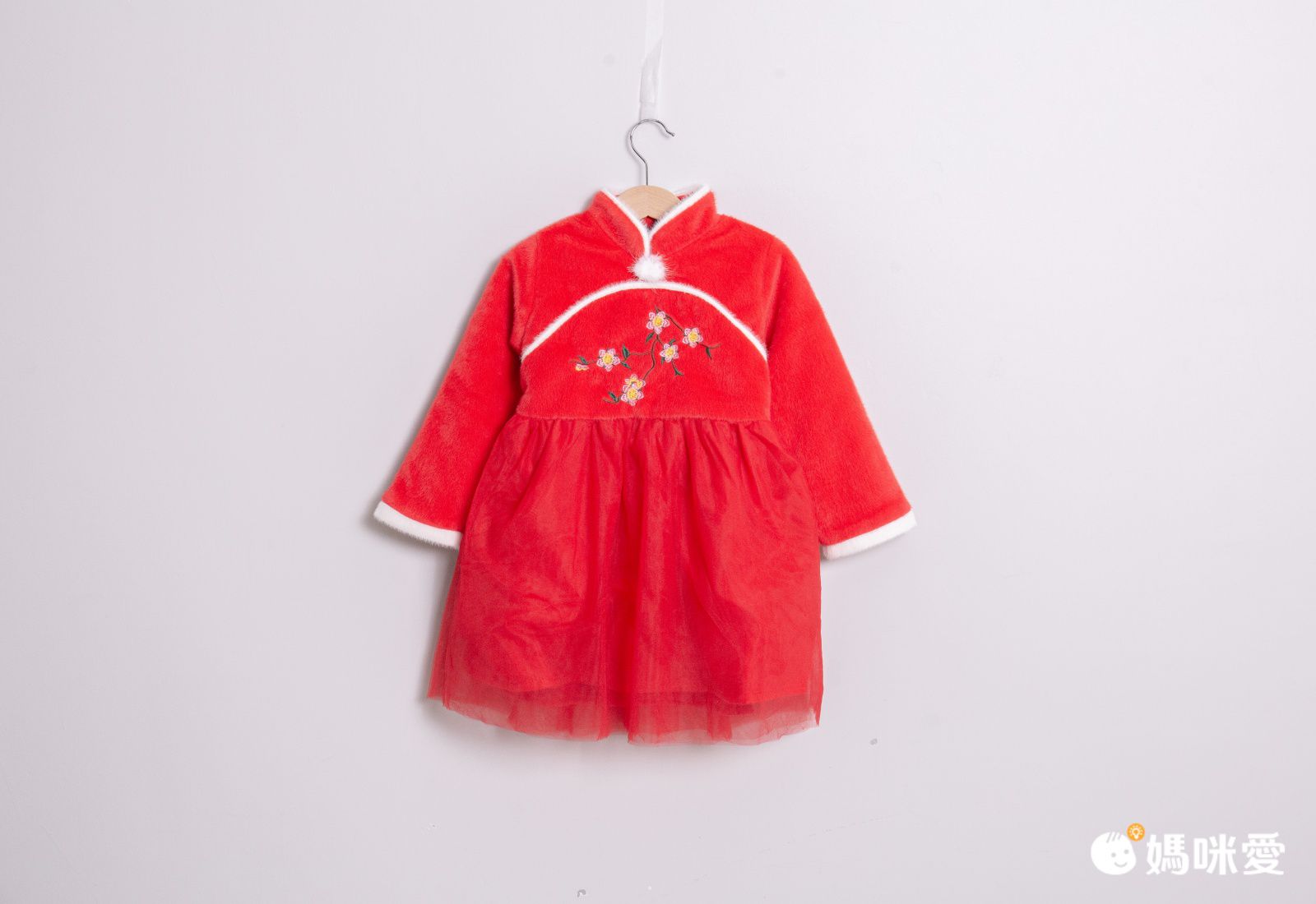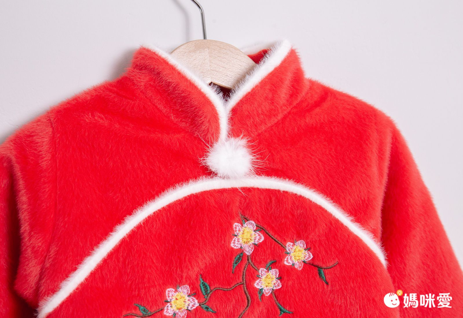 採用復古旗袍領,俏皮可愛,輕鬆完成超可愛拜年造型!胸口梅花刺繡超適合過年喜慶氣氛