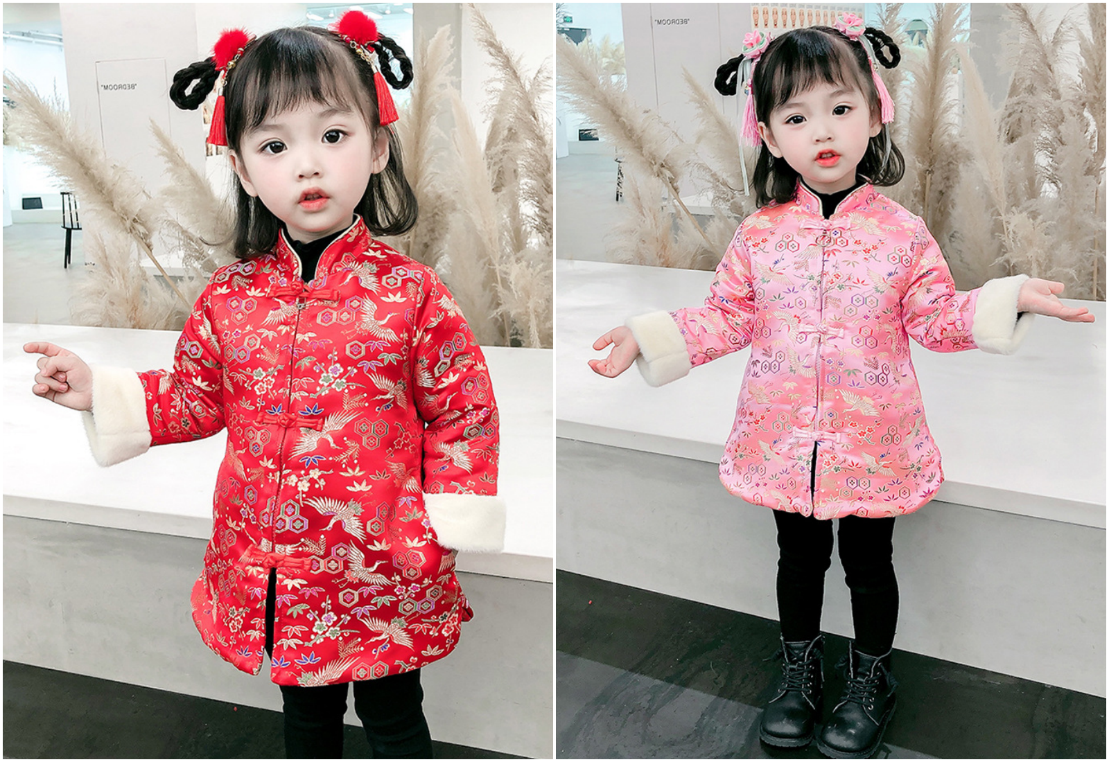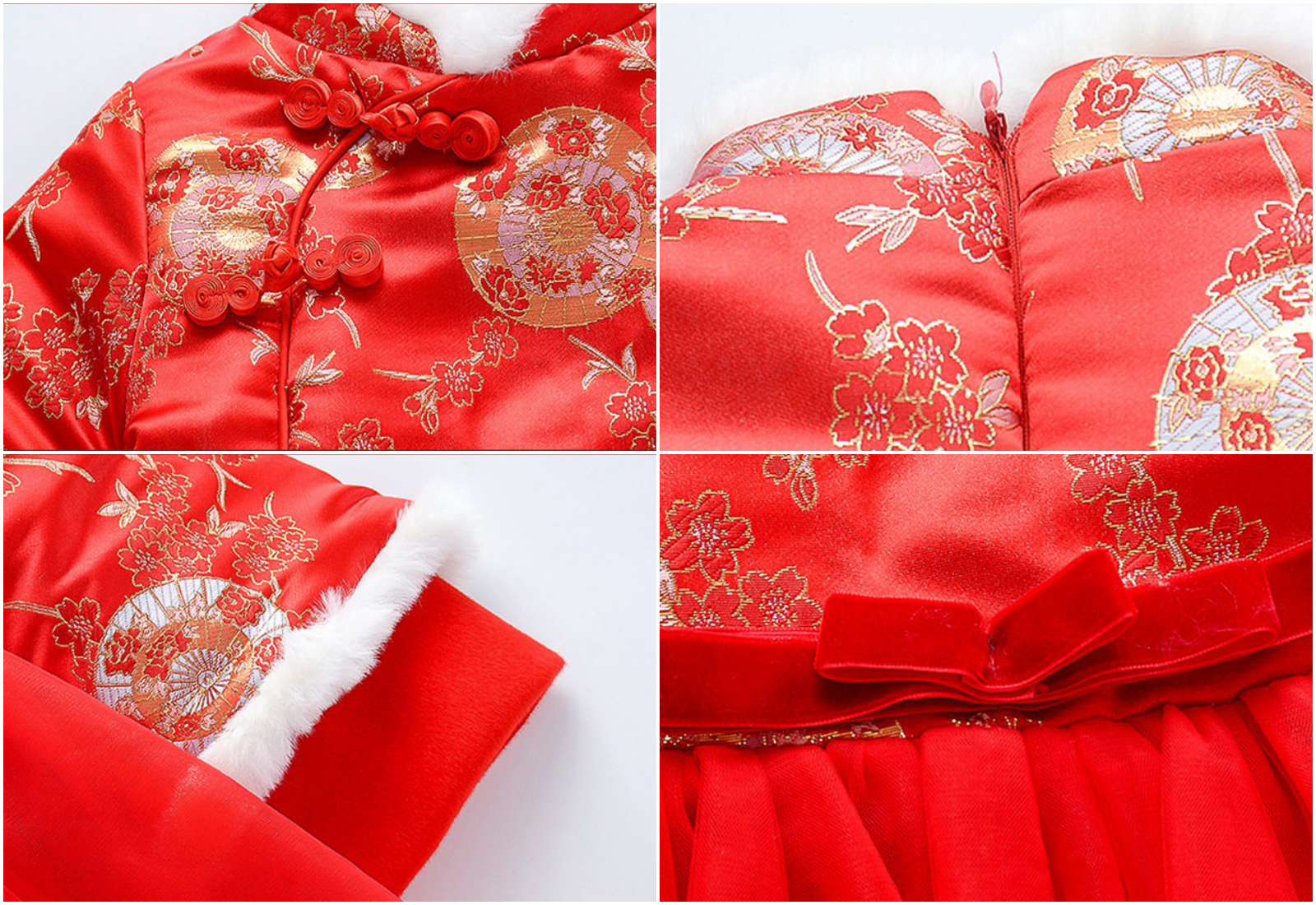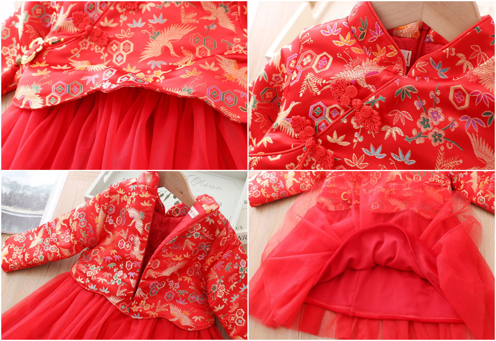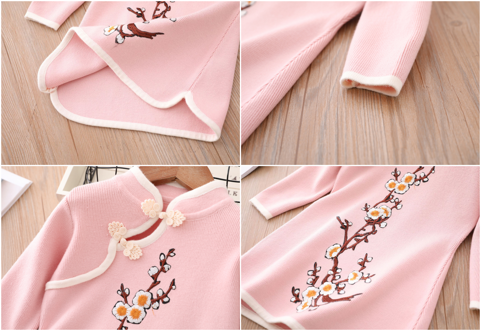 採用復古旗袍領,俏皮可愛,輕鬆完成超可愛拜年造型!胸口梅花刺繡超適合過年喜慶氣氛