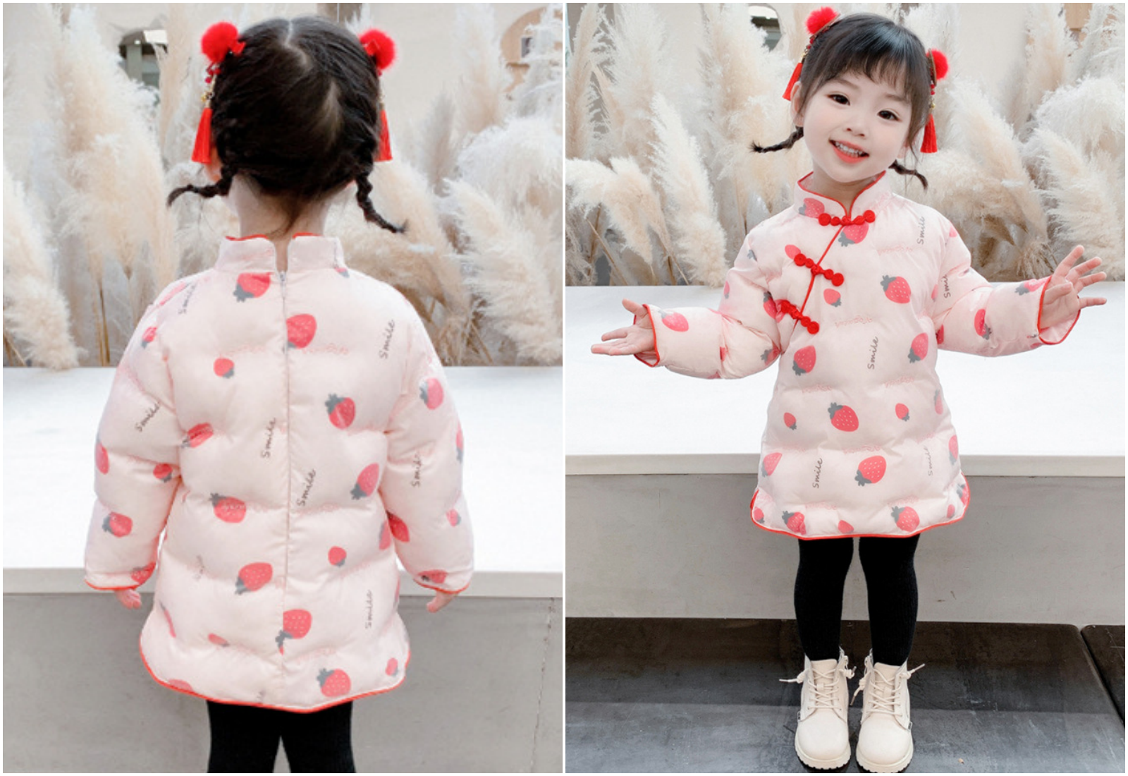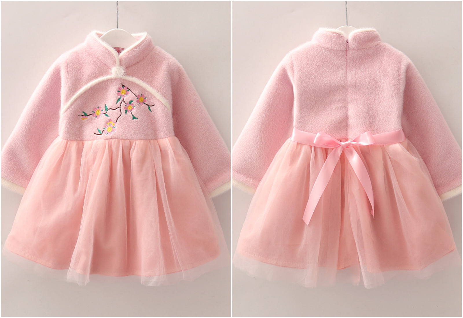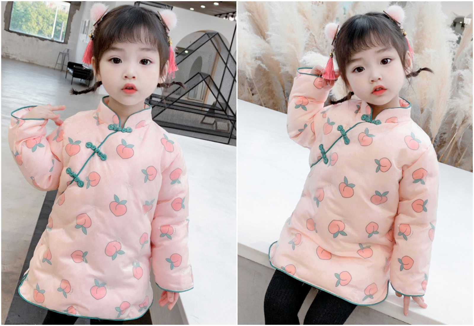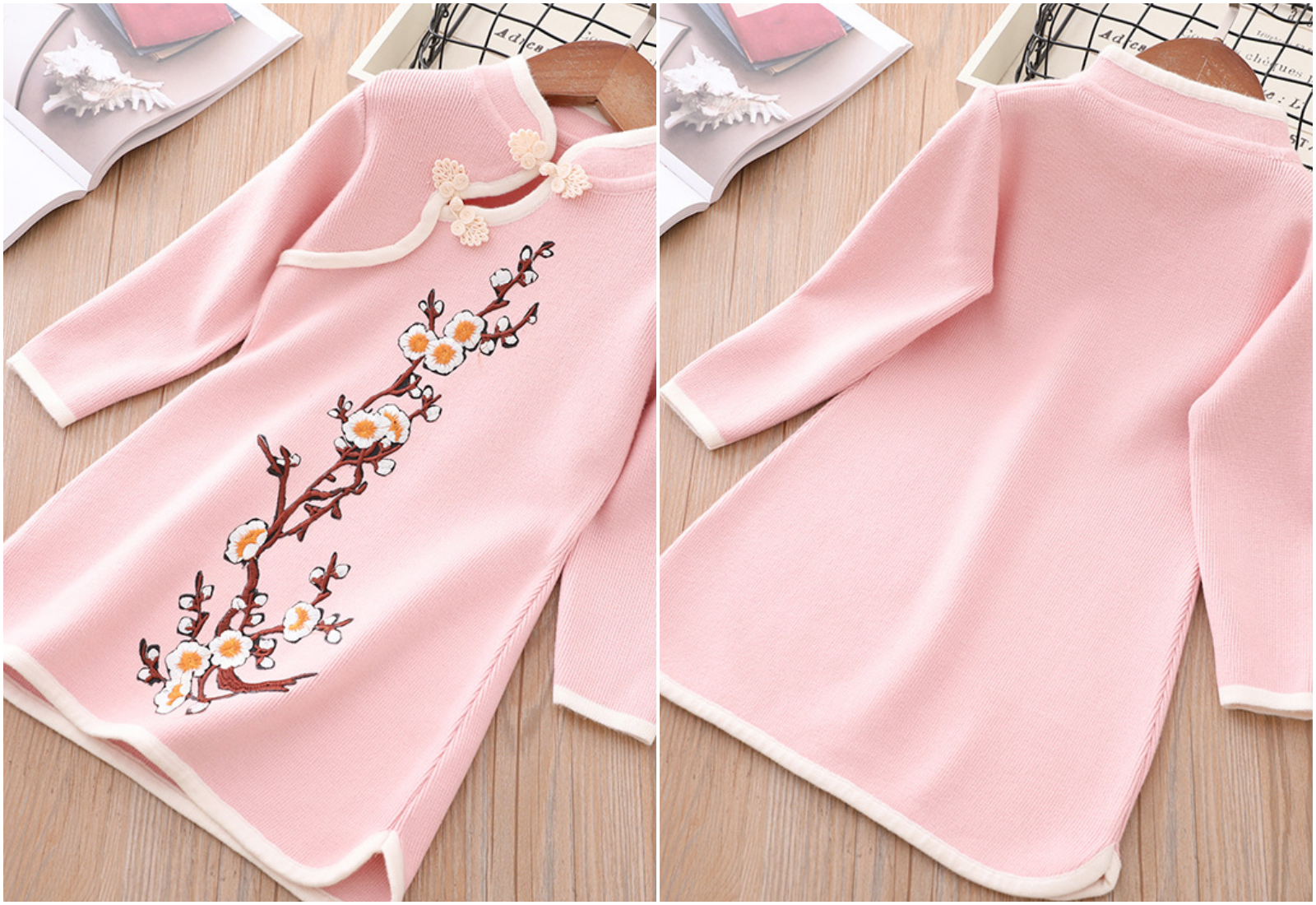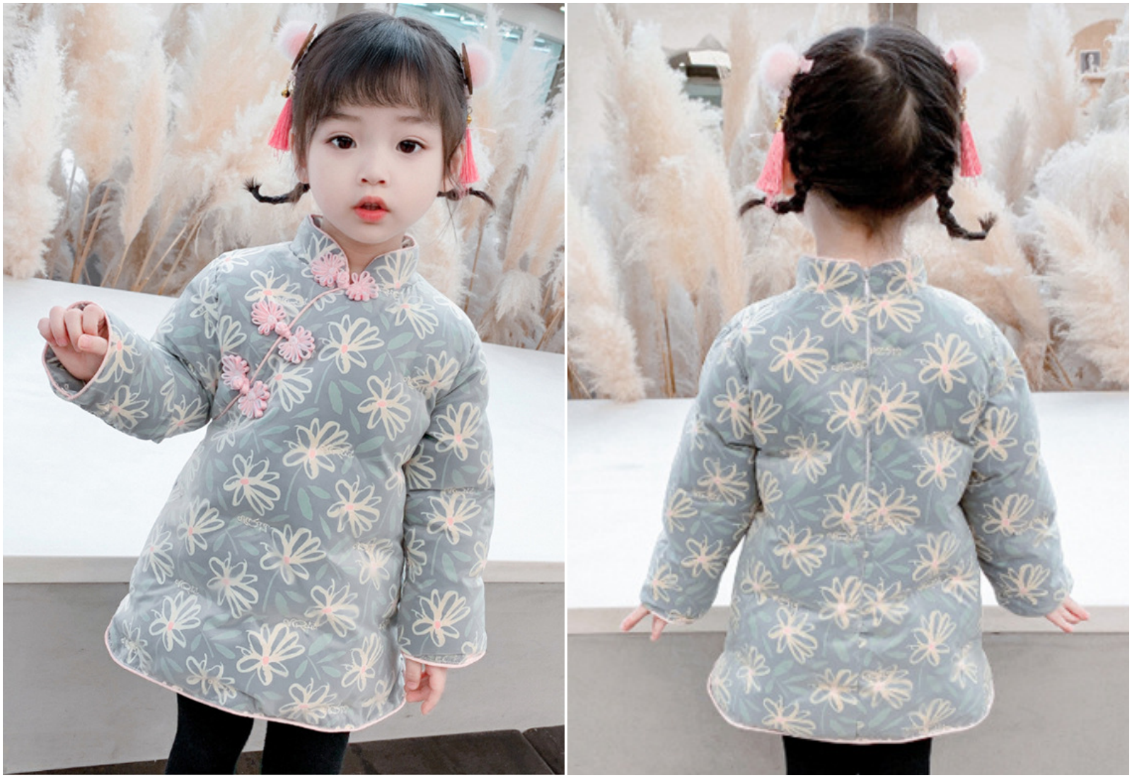 採用復古旗袍領,俏皮可愛,輕鬆完成超可愛拜年造型!胸口梅花刺繡超適合過年喜慶氣氛