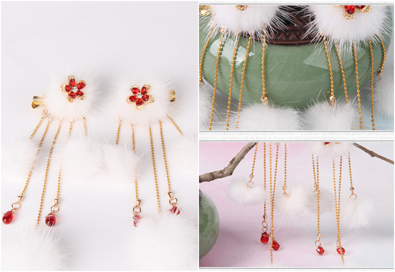 髮夾像要帶有冬日感又兼具仙氣的話,毛絨會是很不錯的選擇喔~看這款再加上垂墜,真的好美喔