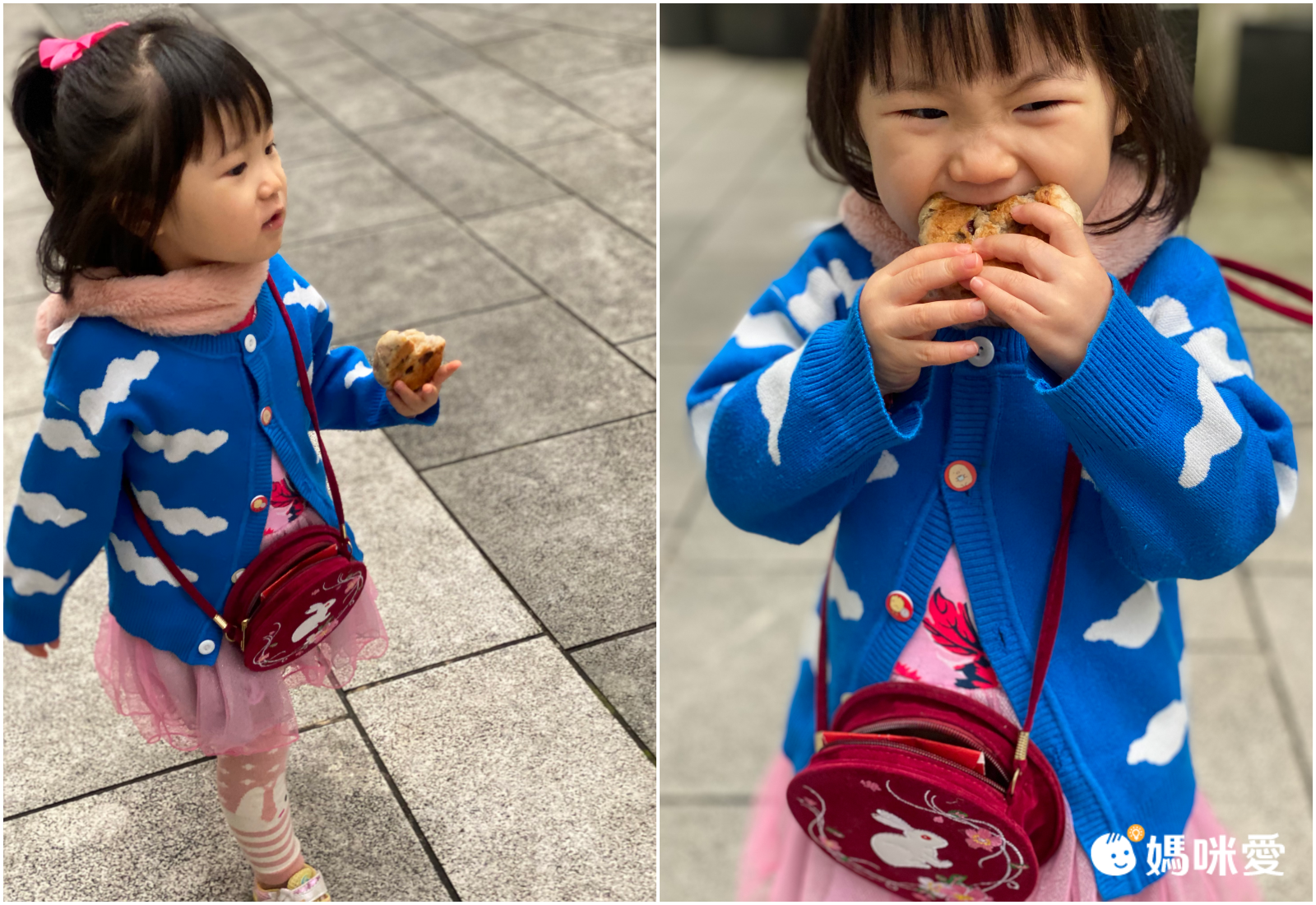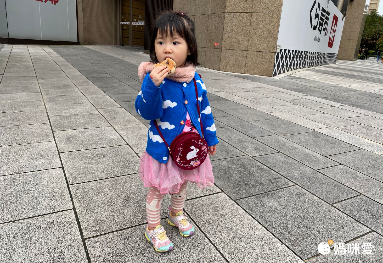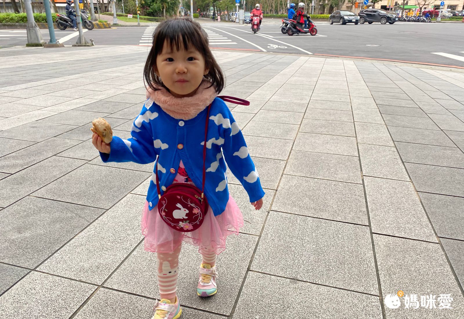 媽咪特別幫他在裡面搭了點點褲襪,穿上甜甜配色的運動鞋也不違和呢~