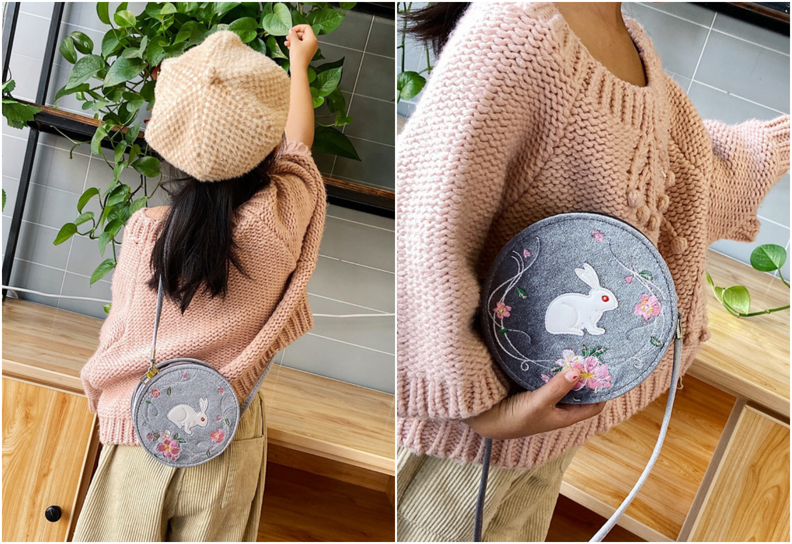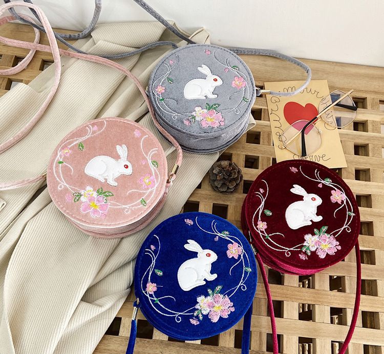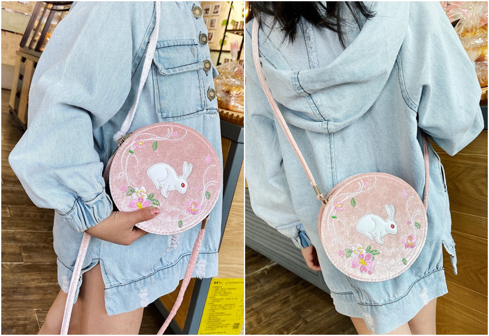玉兔加上美美的櫻花刺繡在燈芯絨材質上,復古別緻,四色都好好看~