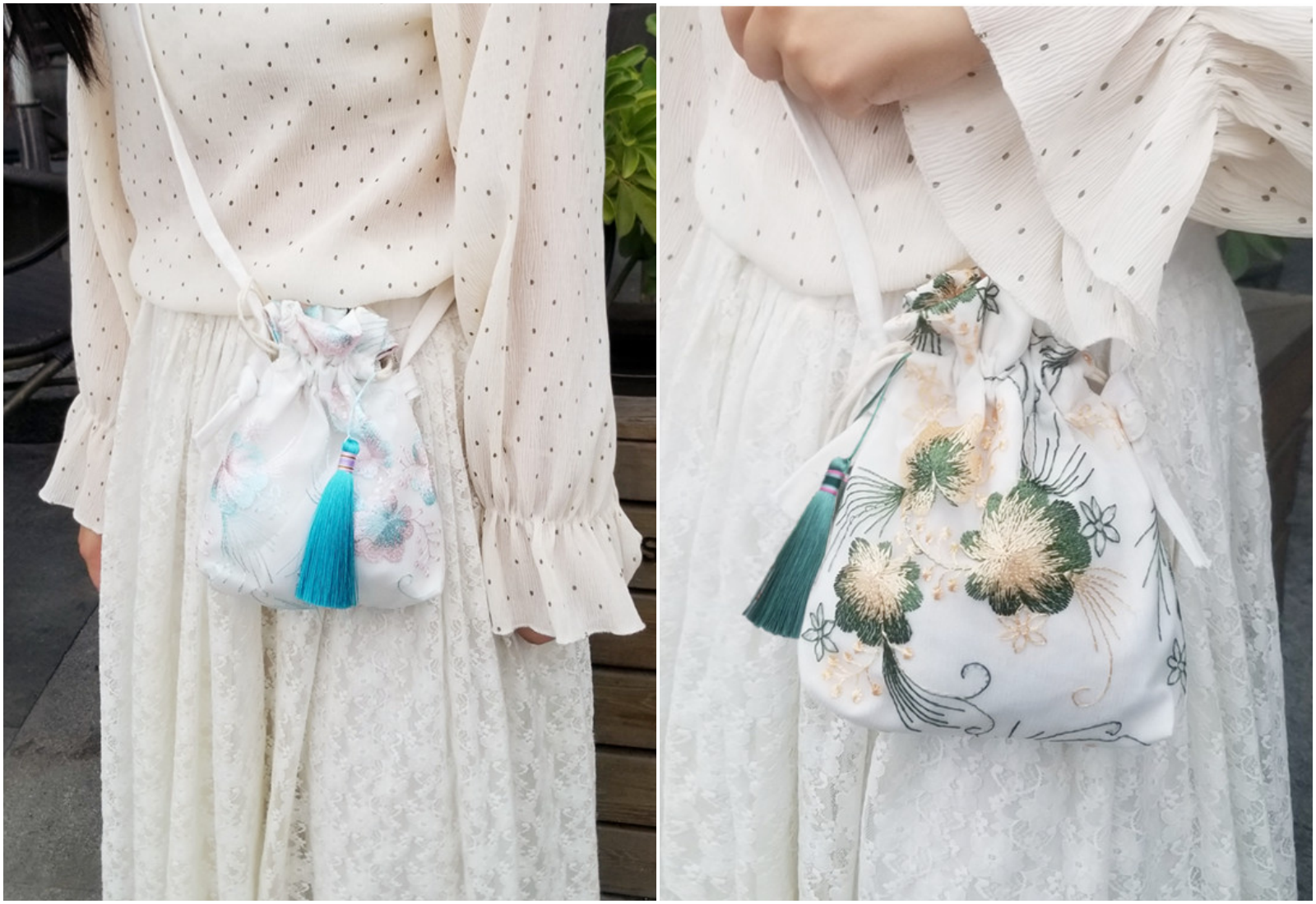 兩款包型稍微有點不同,一圓一扁,不變的是都仙氣逼人,跟漢服、旗袍真的是絕配~