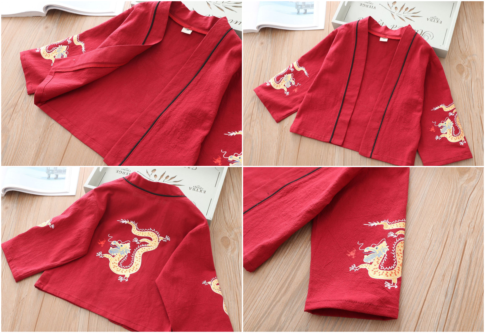 舞龍舞獅真的年味十足,袖子上的金色圖樣也很喜氣,當作外套也很適合喔~