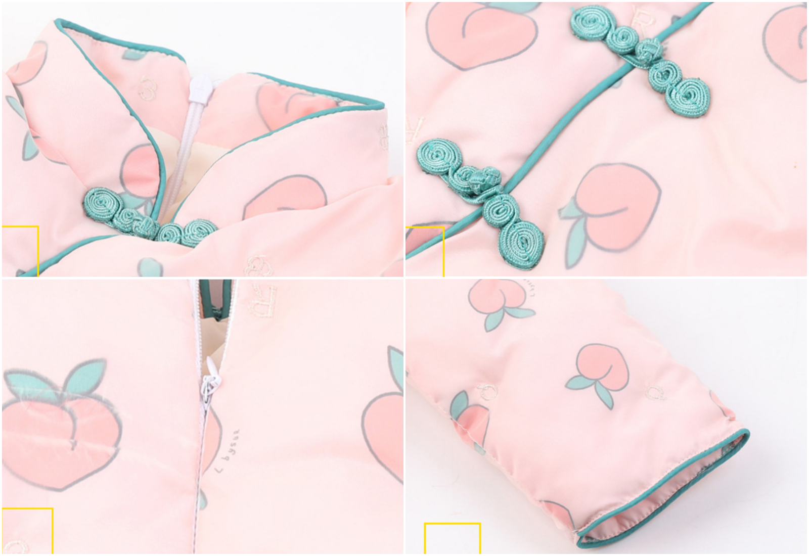 這次也有不是正紅色的旗袍,平常也能穿~加上水果圖案超甜的