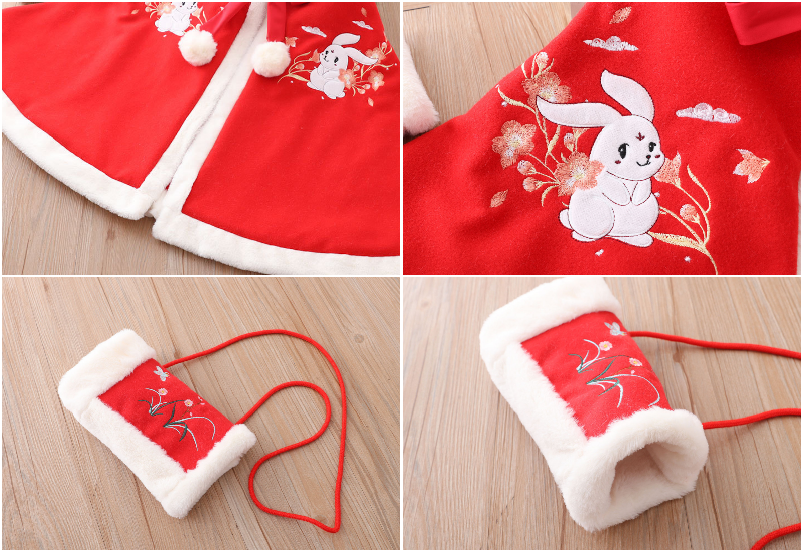 過年服飾如果不想穿整天,可以帶這款斗篷喔~而且還有附包包,分開搭也好好看