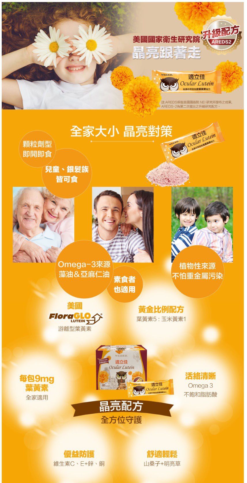 每天看3C產品或是孩子唸書,眼睛的保養最重要!市售葉黃素這麼多,到底該怎麼選呢?威德的葉黃素是全美最多醫師推薦,五效護明營養素,複方更能多重補充營養!擁有Omega-3不飽和脂肪酸、明亮草、維生素C、維生素E、莓果花青素~