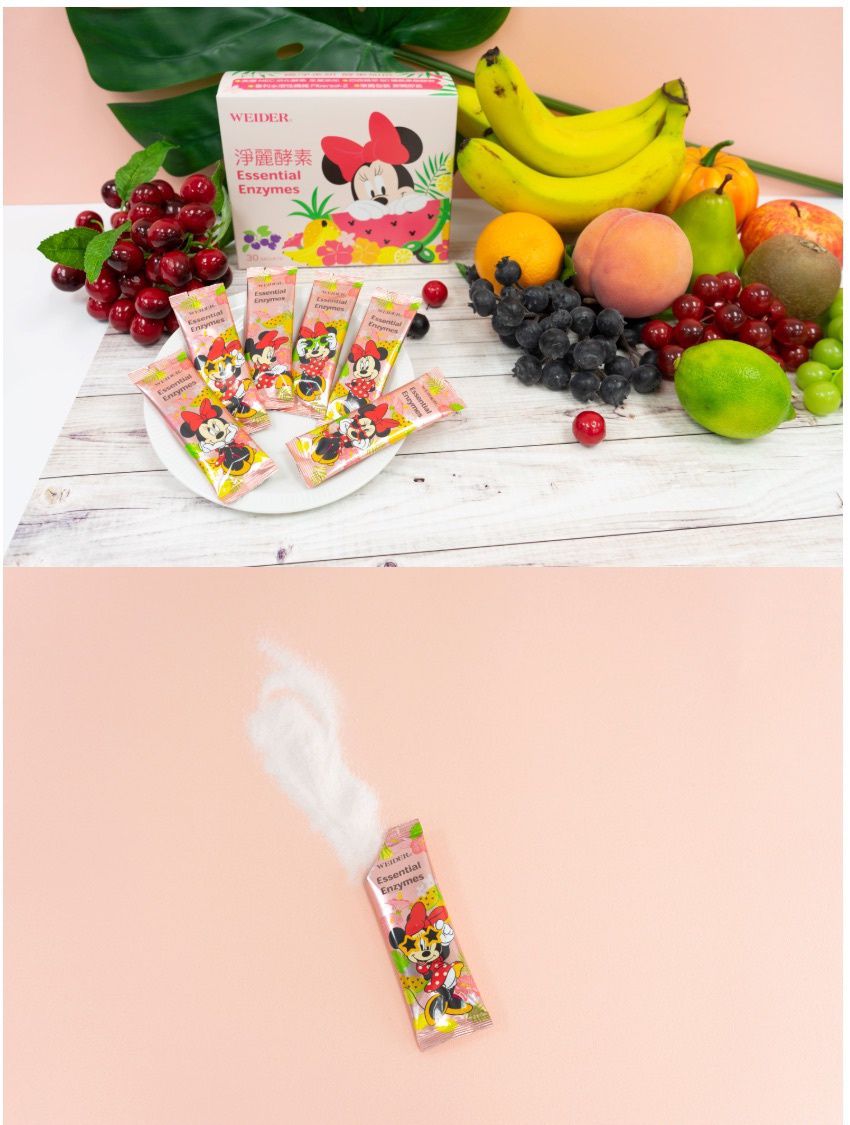 超可愛的粉色米奇米妮包裝,小小一包就有80種蔬果精華,每包的熱量也只有10.9大卡,輕盈無負擔。