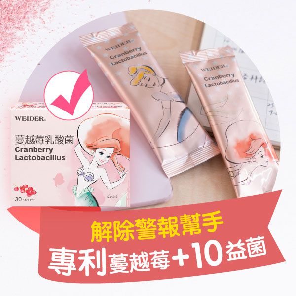 上面介紹完了孩子的乳酸菌以及魚球,媽咪的日常保健當然也要照顧到呀!就算當媽咪了還是要有少女心!特別推薦這款蔓越莓乳酸菌,每包就有蔓越莓500mg,使用專利包埋技術,「Cran-Max®蔓越莓, GFU3益生菌, STP4益生菌」三重守護私密健康 ❤