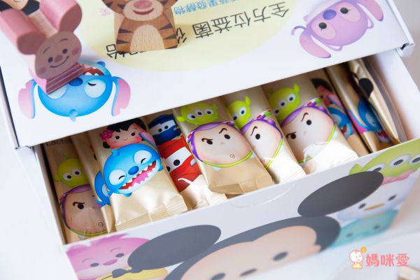 方便的抽屜式設計,一拉開就看到多種Tsum Tsum迪士尼角色的可愛包裝,看了都覺得心情好好!
